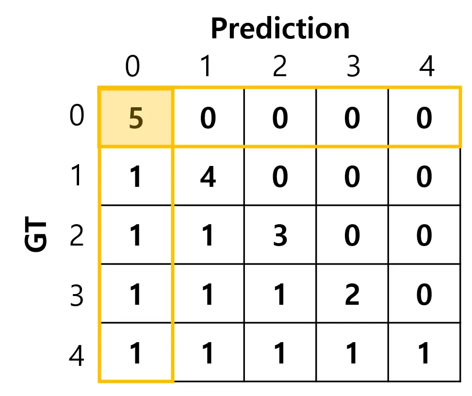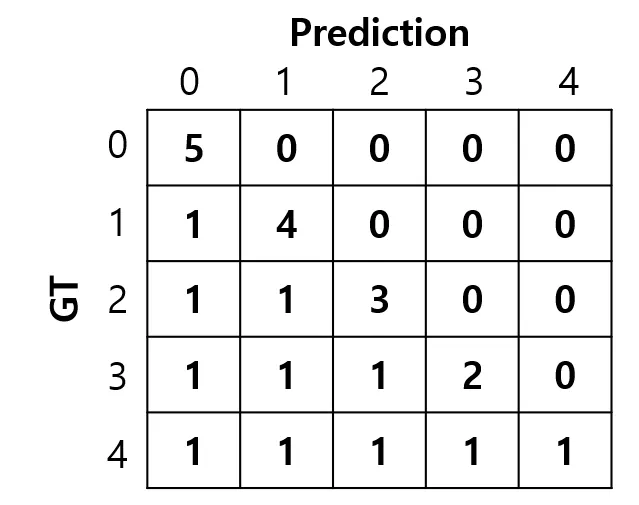 Calculating according to the above formula, values from 0 to 5 in the Category represent the values of Prediction when GT is 0.