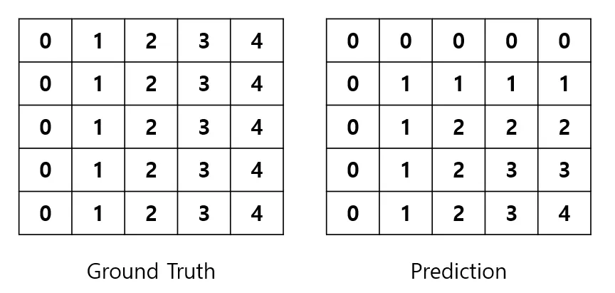 Therefore, by counting the number of elements with a value of 10 in the entire Category, we can count the number of pixels where GT was 1 and Prediction was 5.
